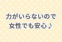 足のみを使うので力は必要ありません。女性でも十分お仕事をしていただけますのでご安心ください。