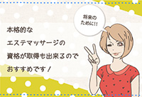 リンパアロマエステマッサージの本格的な資格も取得可能ですので、資格を取得されたい方は応募時にご相談をして頂ければと思います。資格取得料は一切かかりませんのでとてもお得です。